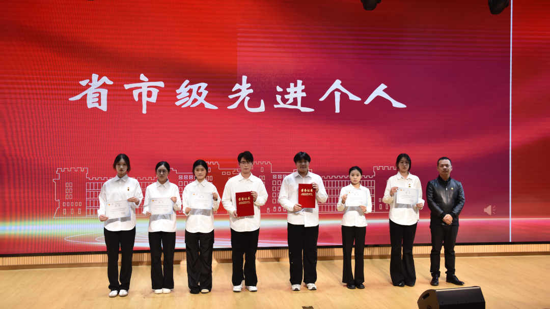校党委副书记林艺勇、校团委书记王李沙分别为省市级先进个人、校级优秀团队、校级先进工作者、校级先进个人及优秀社会实践报告获奖者颁发荣誉证书。