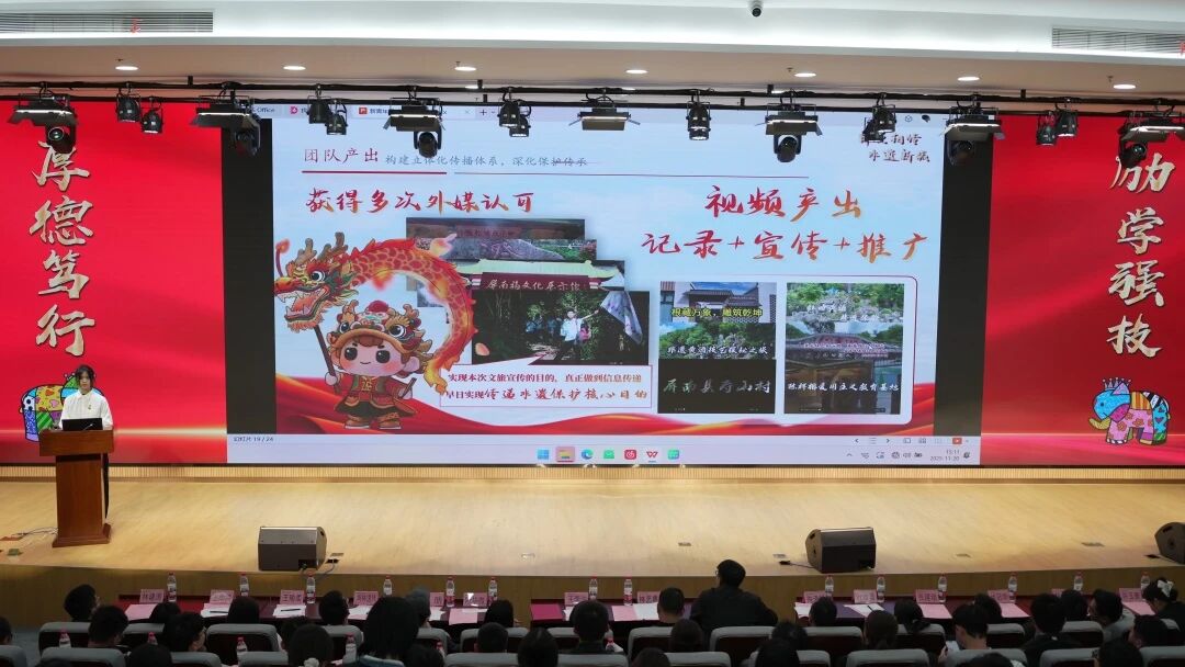 会上,12支实践队伍依次登台,通过生动的影像纪实与鲜活的案例讲述,立体呈现了实践队深入八闽大地的丰硕成果。从赋能乡村发展的智慧方案,到赓续红色血脉的青春宣讲;从扎根基层一线的爱心支教,到推动非遗焕新的匠心传承,各团队精准对接社会需求,充分发挥学科专业优势,将知识书写在田野乡间,以实干诠释了福软学子服务基层、情系家国的时代担当。