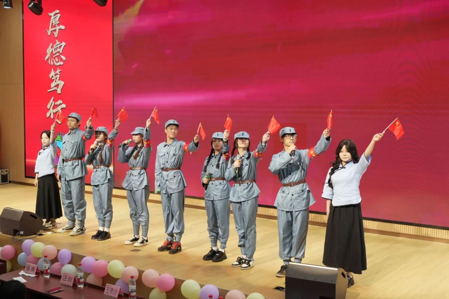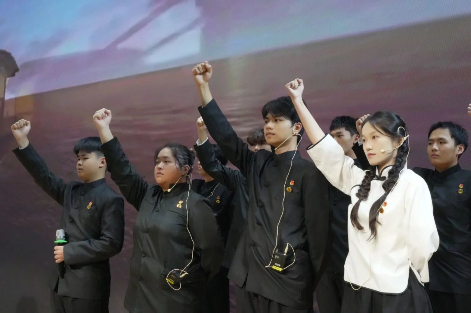 他们热忱满怀,饱含深情地诉说着每一段革命过往。以语调、神情、姿态传递赤诚,他们深情地赞颂家国,铿锵有力地抒发心中的抱负,声线嘹亮,心绪跌宕相宜,时而舒缓,时而激昂,吐字清晰,节律明快,深深打动着现场每一位观者的魂。