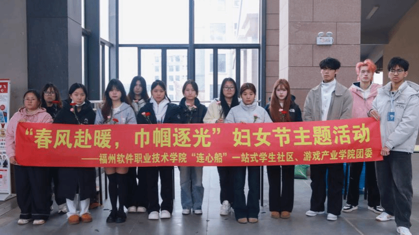 为深入推进“温暖福软”建设,落实“暖阳愈心”行动理念,弘扬尊重女性、关爱女性的良好社会风尚,丰富校园文化生活,我校“连心船”一站式学生社区联合游戏产业学院于2026年3月8日在风雨长廊开展春风赴暖,巾帼逐光”妇女节活动主题活动,作为“我们的节日”系列首场活动温情启幕。