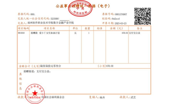 爱心义卖活动得到全校师生积极响应,共筹集善款670.03元,所得款项全部捐赠至中国社会福利基金会,改善乡村儿童学习环境,用实际行动生动诠释福软学子的责任与担当。