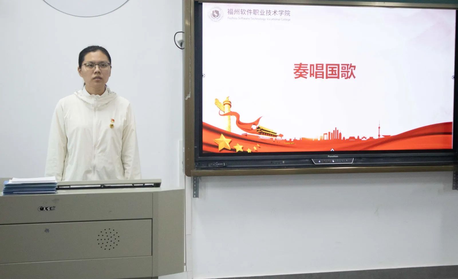 全体起立,奏唱国歌
