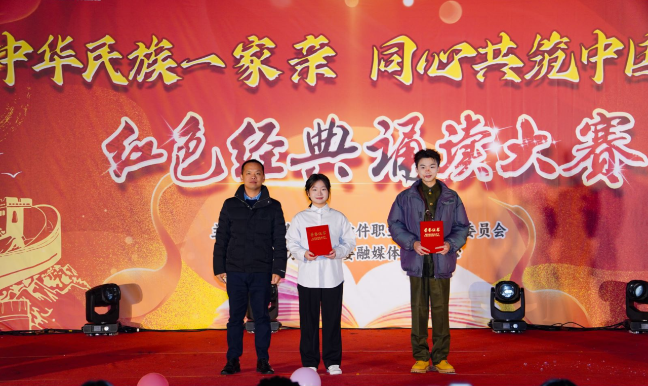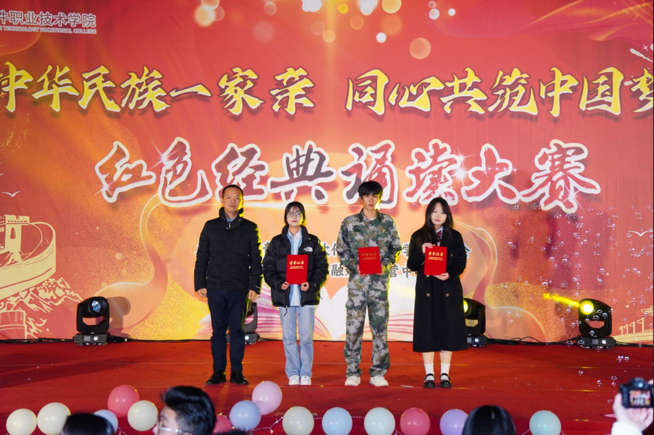 为了弘扬中华优秀革命精神,加强文化自信和民族自豪感,营造“学党史、感党恩、读红色经典”氛围,福州软件职业技术学院第十二届“中华民族一家亲 同心共筑中国梦”红色经典诵读比赛决赛于2023年12月20日晚上18:30在D区舞台举行。经过初赛、复赛等层层选拔,共有10组参赛队伍进入决赛。
