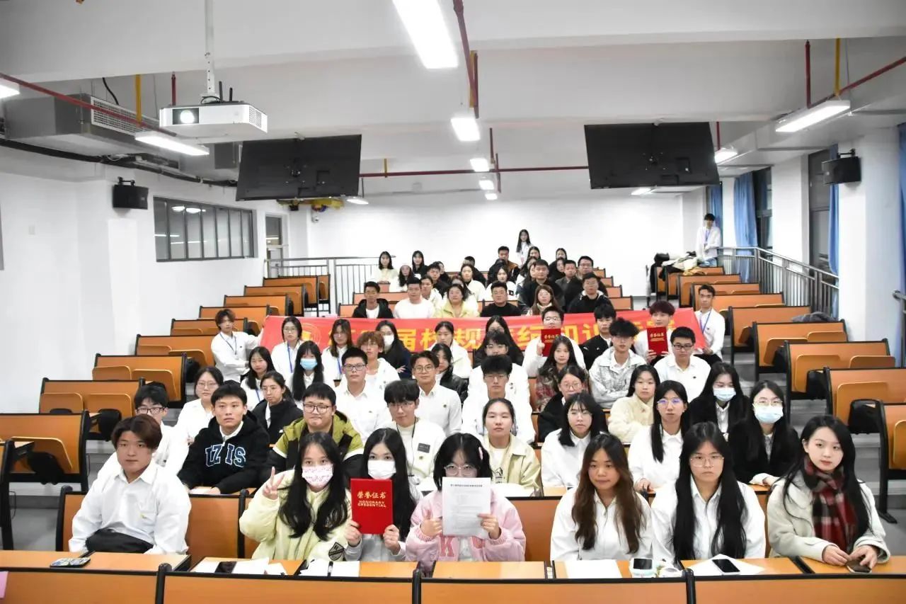 为贯彻落实《普通高等学校学生管理规定》(教育部令第41号)《高等学校学生行为准则》及《新时代爱国主义教育实施纲要》等文件精神,普及国情、党情、校情知识,增强学生爱国爱党爱校意识,加强禁毒安全宣传教育,培养学生良好的精神风貌和行为规范,共同创建美丽、和谐、平安校园。12月21日晚上19:00校团委学生自律管理中心在a507举办“文明修身工程”主题活动第三届校规校纪校规校纪知识竞赛。
