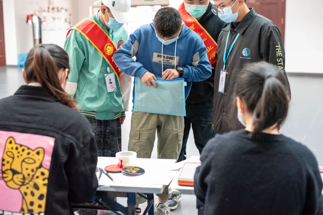 相关工作人员和志愿者们有条不紊地引导新生进行登记、填写个人信息、办理入住。