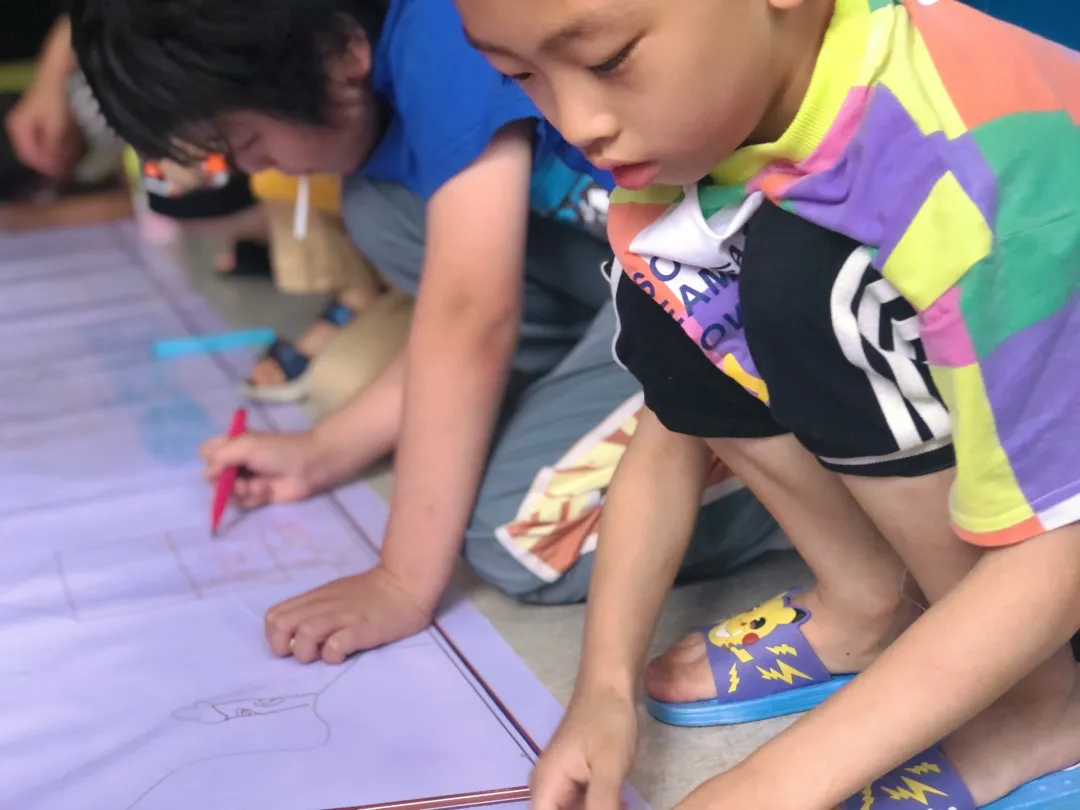 九点三十分,助画志愿者活动开始啦!“小画家”们有序地来到现场并围着画布就坐,在志愿者们的带领下,小画家们充分发挥自己的想象力,大胆构思,不一会儿,一幅幅充满童趣、充满幻想、充满活力的图案呈现在画布之中。