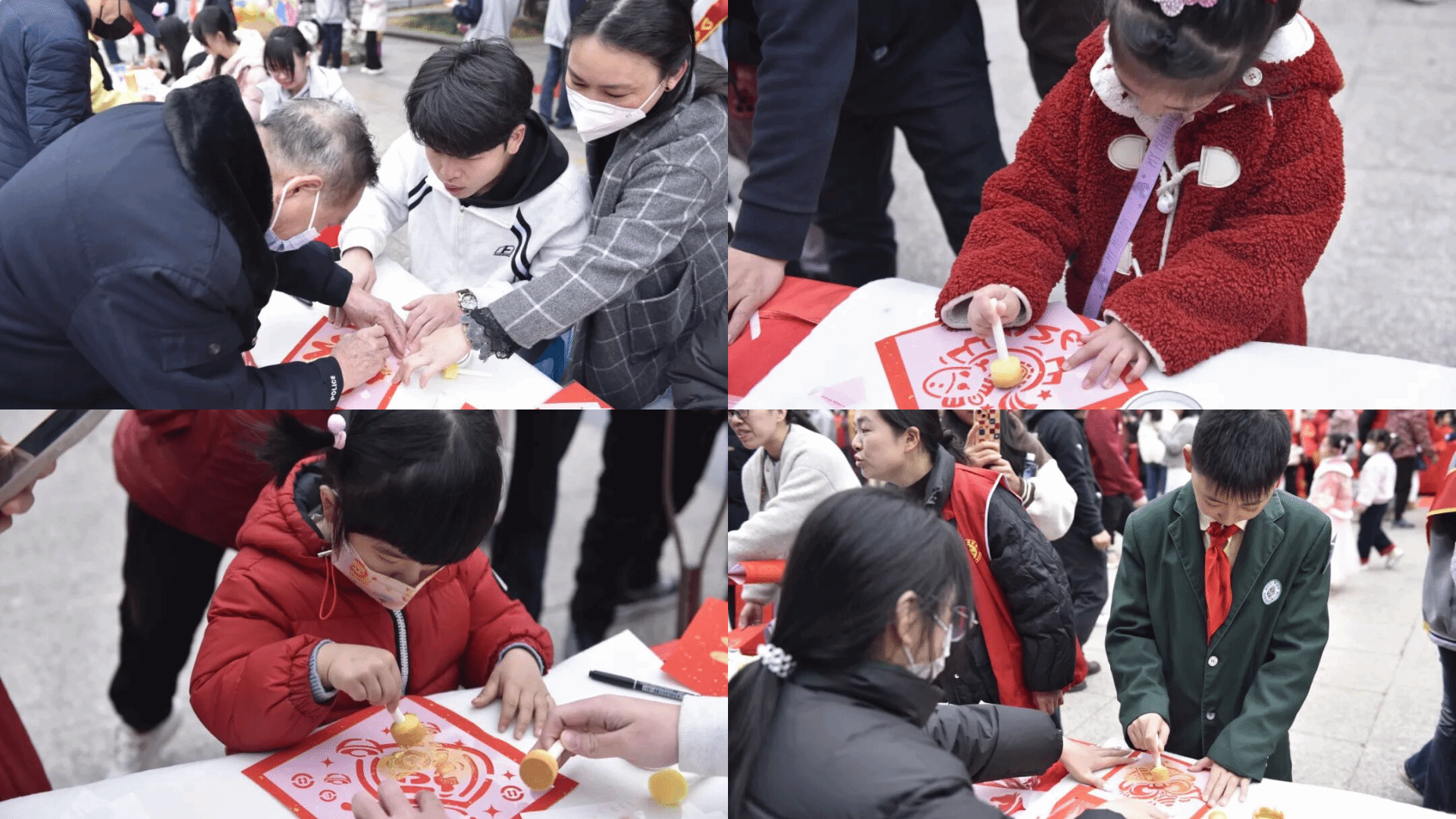 活动以拓印非遗技艺为核心,将传统文化与新春祝福相结合,志愿者们准备好拓印模板、红纸、颜料等材料,向居民讲解拓印步骤与技巧,引导居民参与体验,一拓一压间,满是对新春的热切期盼。