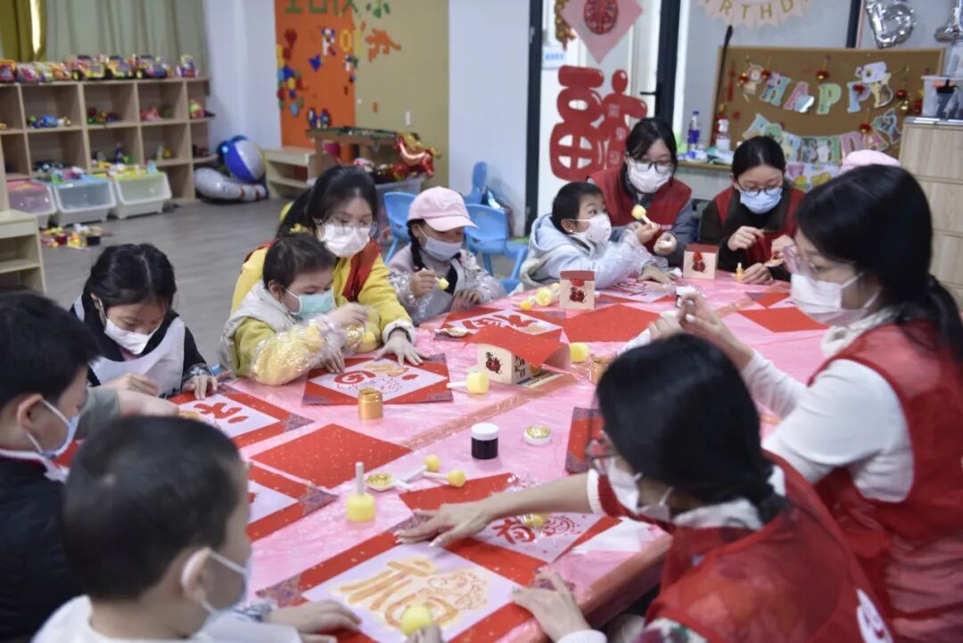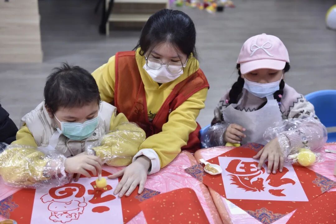 安全自护课堂结束后,志愿者们开展马年拓印福字活动。先向小朋友示范拓印方法,讲解操作要点与注意事项,随后指导小朋友们动手制作。小朋友全程投入,努力完成属于自己的马年拓印福字作品。