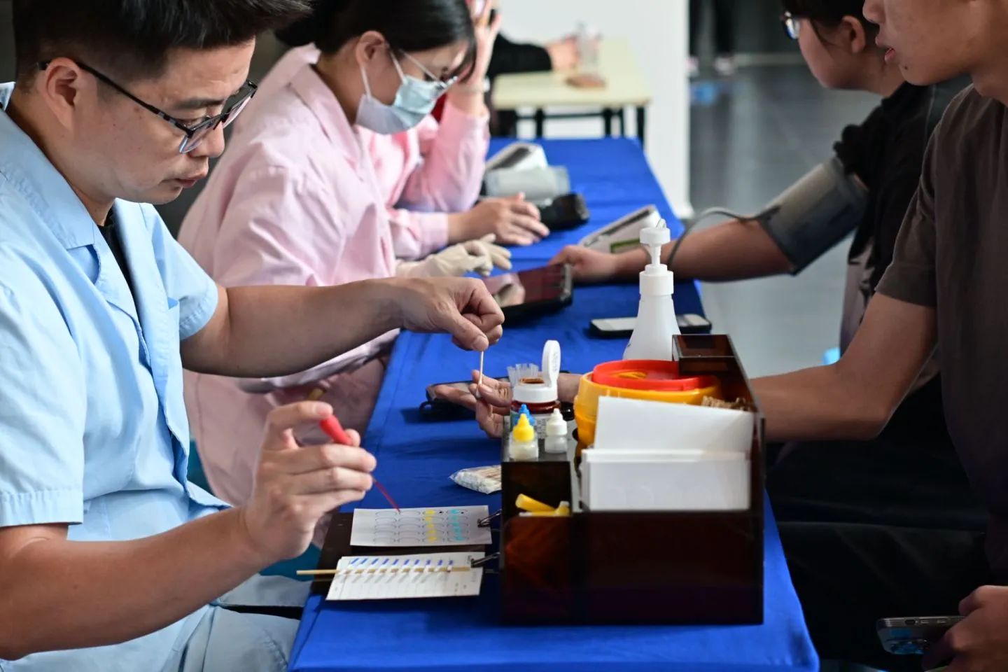 本次无偿献血活动场地主要分为咨询登记区、体检区、采血区、休息区四个区。现场秩序井然,在工作人员和志愿者引导下,师生有序完成填写登记表、测血压、抽血化验等检查流程,各环节顺利推进,保障了活动的高效与安全。