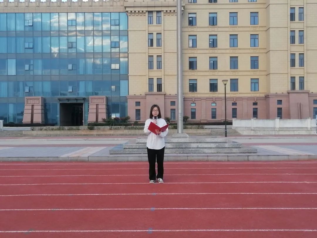 陈月柠同学做国旗下讲话,“一二·九”运动虽然已经过去88年了,但这场运动中所折射出来的那种伟大的爱国主义精神,将永远激励着后人为祖国的发展,民族的兴亡奋勇前进。昔日的热血青年,懂得如何在民族危机之时去追求祖国的光明未来,为建立一个和平、自由、民主的新中国,付出了热血和生命。祖国的利益与我们每个人休戚相关。作为新时代的大学生,我们要珍惜时间,刻苦学习,努力拼搏。让我们踏着先行者的脚步奋勇前进,让“一二·九”运动这面爱国报国的旗帜在我们心中高高飘扬。