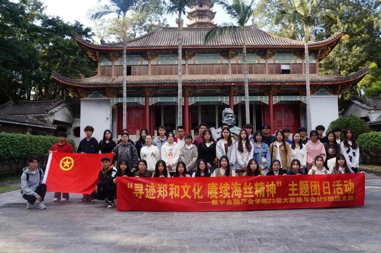 2023年11月21日,数字金融产业学院2023级大数据与会计5班团支部在郑和史迹陈列馆开展了以“寻迹郑和文化,赓续海丝精神”为主题的团日活动。在郑和史迹陈列馆内,团支书向同学们介绍陈列馆的构成及郑和下西洋这一伟大壮举的历史事迹。一件件珍贵的文物,一段段刻骨的历史,让同学们深刻体会到郑和七下西洋之不易,切实理解何为开放包容的海丝精神,并深刻认识到唯有秉持开放包容的姿态,中华文明才能在一次次的交流互鉴中不断焕发新的生命力。在今后的学习生活中,支部的同学们纷纷表示将以实践贯彻海丝精神,树立吾辈文化自信,守正创新谱写新篇章。