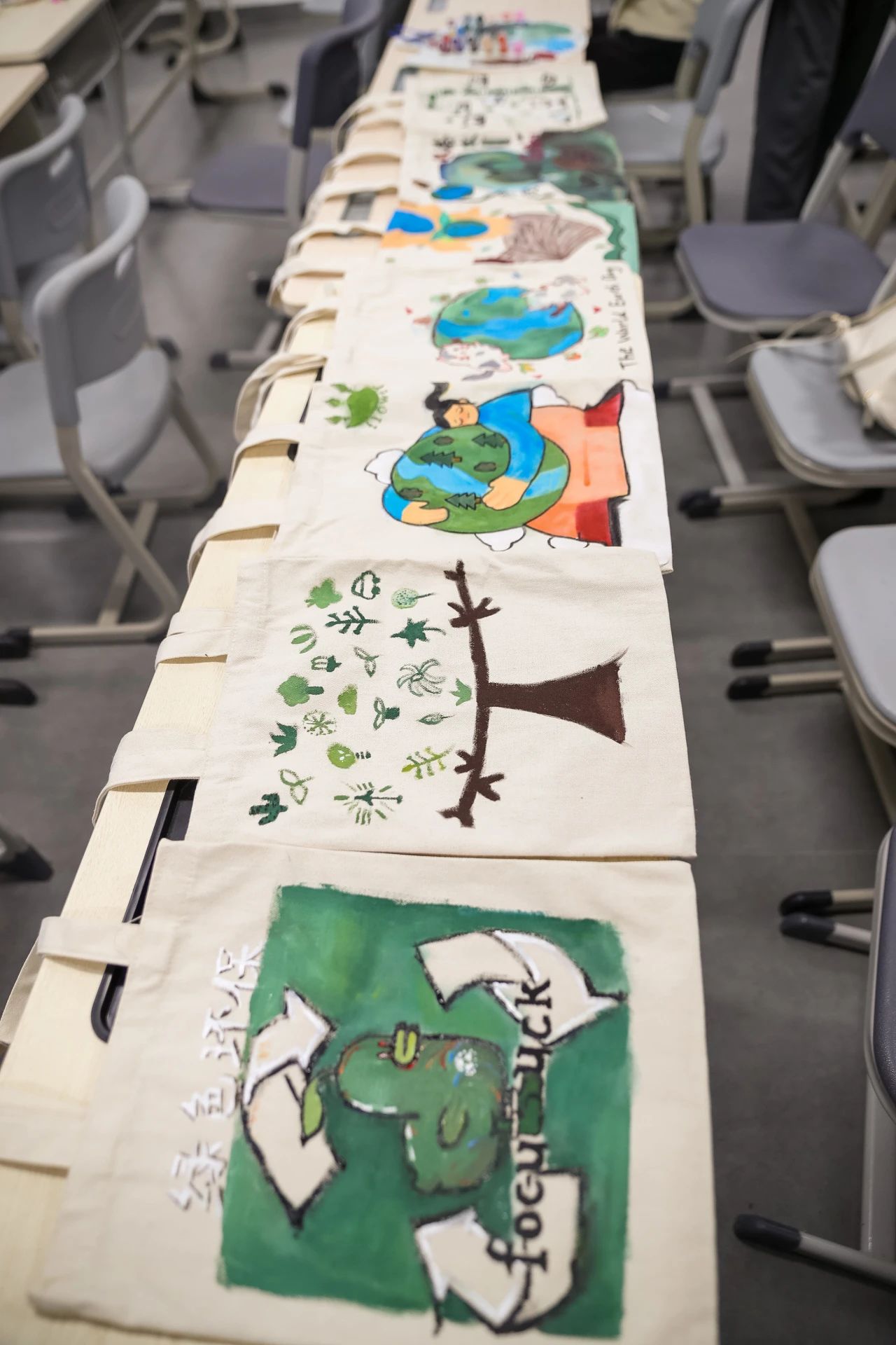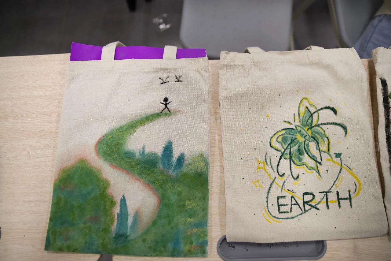 现场工作人员为大家准备了精美的帆布袋,水彩笔以及其他绘图工具。同学们陆续到达活动场地领取物资后进行绘画。在其乐融融的氛围中,同学们发挥自己天马行空的想象力和创造力,全身心投入到了绘画之中。