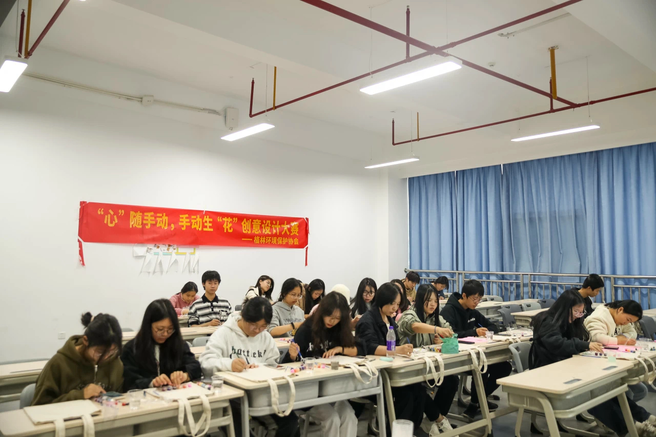 为提高大家的环保意识,培养大家的动手能力,养成绿色、环保的循环理念。我校格林环境保护协会于2023年11月15日在教学楼C606和A609开展“心随手动,手动生花”创意设计大赛系列活动。