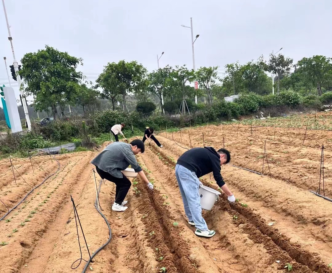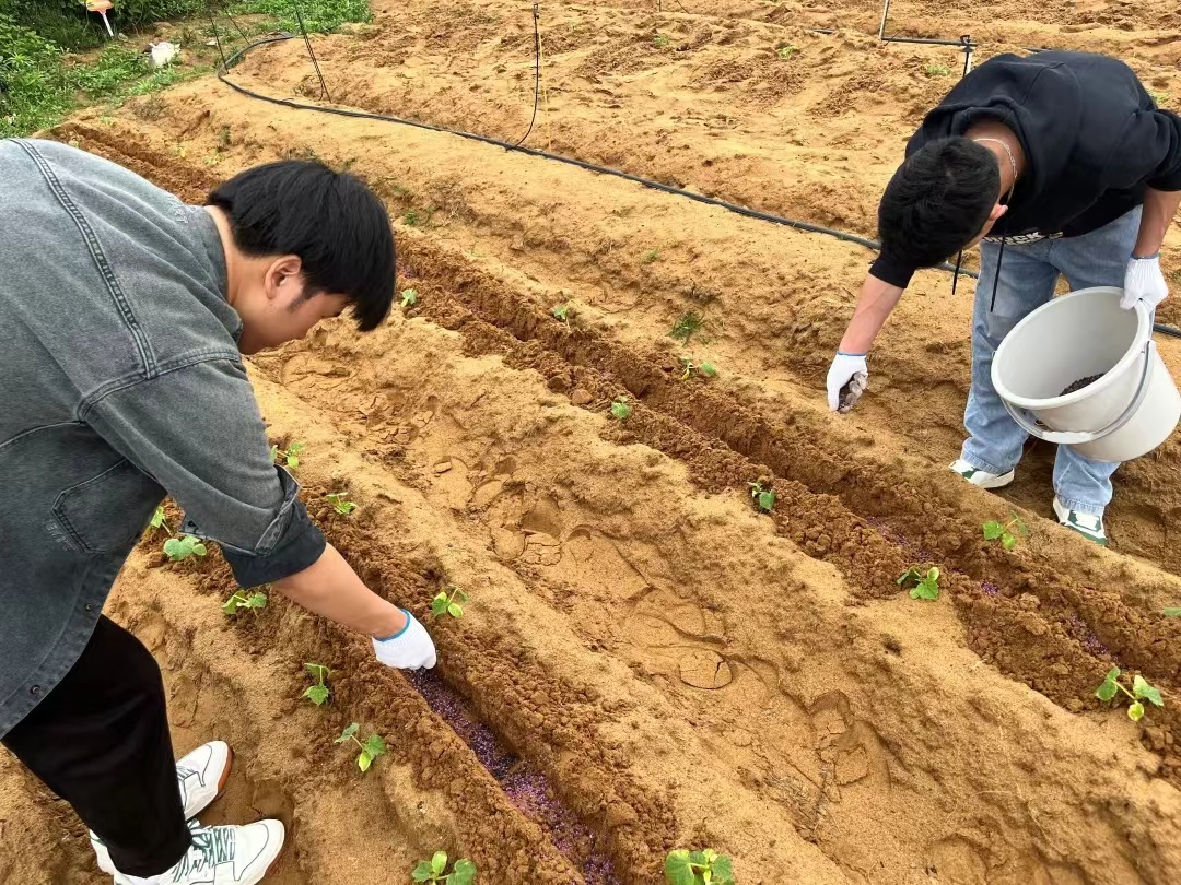 游戏产业学院一直注重培养学生的实践能力和综合素质,此次劳动教育实践活动就是学院实践教学体系的重要组成部分,旨在通过实践教育,培养学生的劳动精神和实践能力,为他们未来的学习和工作打下坚实的基础。在劳动教育这片充满生机的土地上,学生们分组行动,每个人都全身心投入到劳动中。他们学习施肥的技巧,掌握农业知识,同时也在亲身体验中感受着劳动的力量,将肥料均匀地撒在黄瓜苗的根部。汗水湿透了衣背,但每个人的脸上都洋溢着满足和自豪的笑容。他们看着一棵棵黄瓜苗在自己的努力下茁壮成长,仿佛看到了自己辛勤劳动的成果。