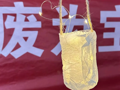在活动过程中,同学们充分利用外卖袋子、口罩、一次性筷子、塑料瓶等废旧物品,通过裁剪、组合、拼装缝合等多种方式,将这些废旧物品变成了抽纸袋、灯笼、收纳盒等别出心裁的艺术品和实用物品。