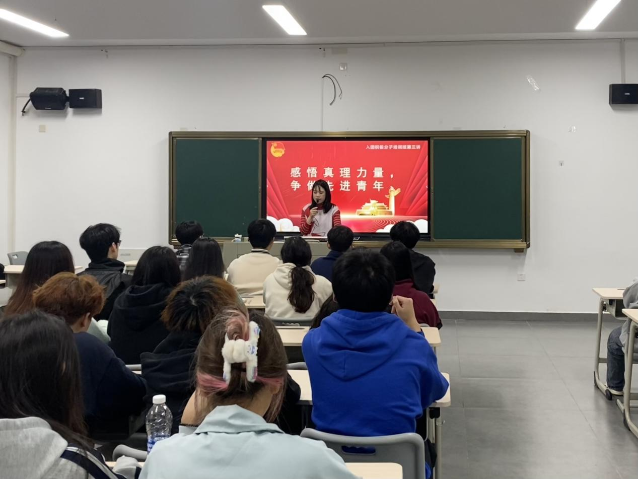 学习新思想,争做新青年。为学习贯彻习近平新时代中国特色社会主义思想,做好团员发展工作,强化对入团积极分子的培养与考察,2024年4 月7日晚,游戏产业学院于教学楼A606召开2023-2024学年第二学期入团积极分子培训班第三讲。本次课程以《感悟真理力量,争做先进青年》为主题,强化入团积极分子理论武装和理想信念教育,进一步引导广大青年学习新思想,增强新时代新青年的责任感和使命感。