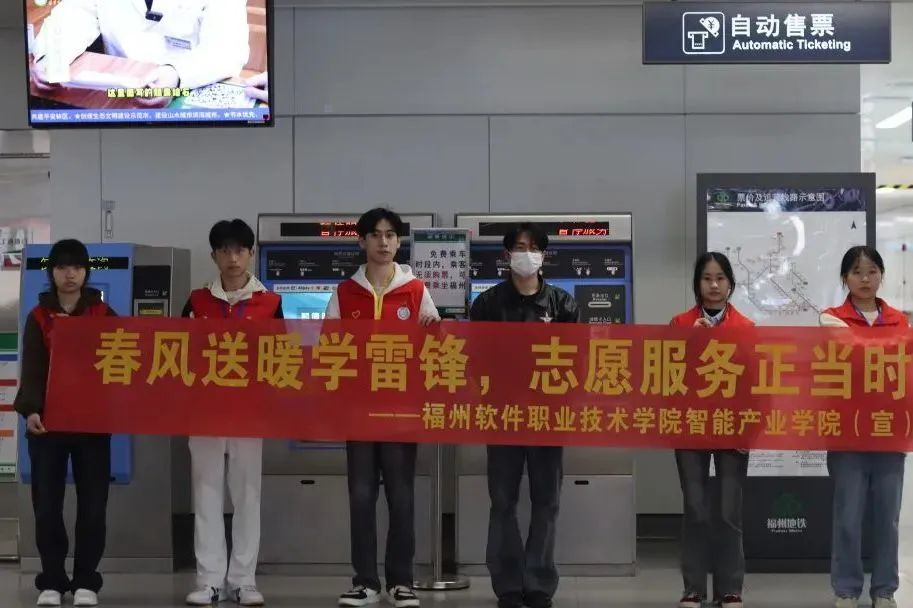 用服务温暖他人,让地铁成为友善与温暖的空间。3月23日,我院志愿者协会在指导老师黄奇龙的带领下,来到了福州万寿地铁站开展了“春风送暖学雷锋,志愿服务正当时”的志愿服务活动。在这个活动中,我们积极参与地铁服务活动,为乘客提供帮助和服务,通过微笑和关爱,让地铁更加温馨,让每一位乘客都感受到我们的关怀和温暖。