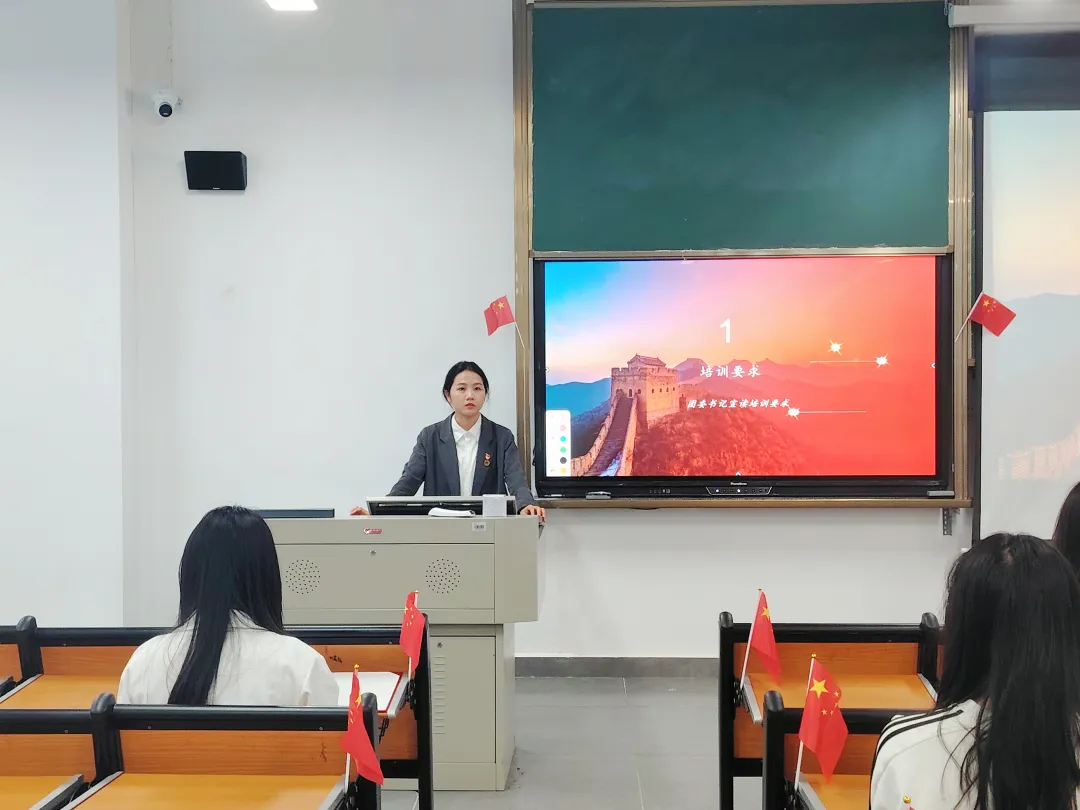 团委书记张梦颖为此次入团积极分子培训班作开班致辞。她表示本次培训班希望各位入团积极分子能够珍惜这次难得的学习机会,并向学员们详细介绍了入团积极分子培训工作的要求和具体的教学安排。随后,对学员们提出三点意见:一是树立正确的入团动机,坚定正确的思想认识;二是要以团员的标准规范约束自己,发挥团员的模范和示范作用;三是要不断增强共青团员意识,自觉接受团组织的长期考验。强调所有入团积极分子在培训期间要保持纪律秩序稳定,规范自身行为,考试讲究诚信,严禁作弊行为,认真学习团的知识、积极参与实践,严格规范入团程序。她鼓励学员们要在学习和实践中磨砺自身能力,成为勇担时代大任的优秀中国青年。