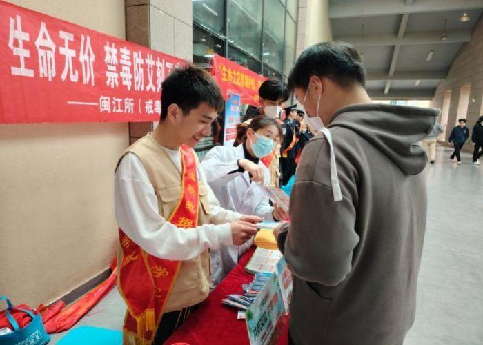 为进一步提高学生们对加强对毒品、艾滋病毒的防范意识,引导大学生树立正确的人生观、价值观、健康观,共同促进健康校园文化的建设。4月1日下午,福州软件职业技术学院校团委红十字会联合福建省闽江强戒所在风雨长廊开展了“生命之花禁毒护航,健康之路防艾同行”禁毒宣传活动,我院组织志愿者参与该活动。