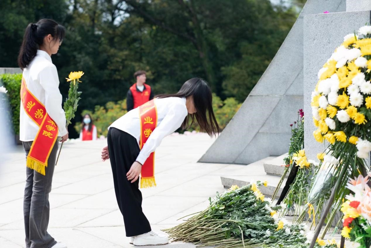接下来是祭奠仪式。在场的学生们怀着崇敬之心,安静有序列队肃立,向革命先烈鞠躬、敬献花圈、集体默哀、瞻仰革命烈士纪念碑。随后他们井然有序,步伐一致移步福州革命烈士英名墙,弯腰为英雄献上鲜花。在深切缅怀英雄们为无产阶级革命和人民利益牺牲自我的英雄壮举的同时,在学生们的心里,也厚植下一颗爱党爱国的情怀种子。