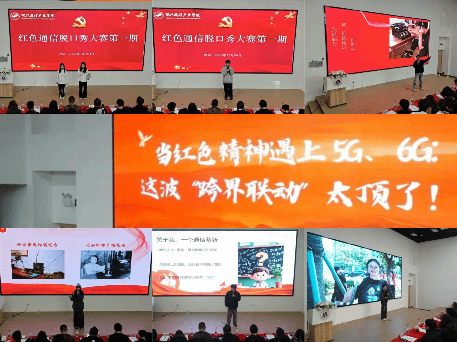 为深入传承红色通信精神,赓续通信人的红色血脉,12月3日下午14:30,福州软件职业技术学院现代通信产业学院于数媒二期报告厅举办“红色通信脱口秀”活动。现代通信产业学院产业副院长王林,党总支副书记陈清华、团委书记姚冠华、全体辅导员共同参与这场以红色通信为主题的特色活动,在轻松的氛围中重温通信先辈的奋斗历程。