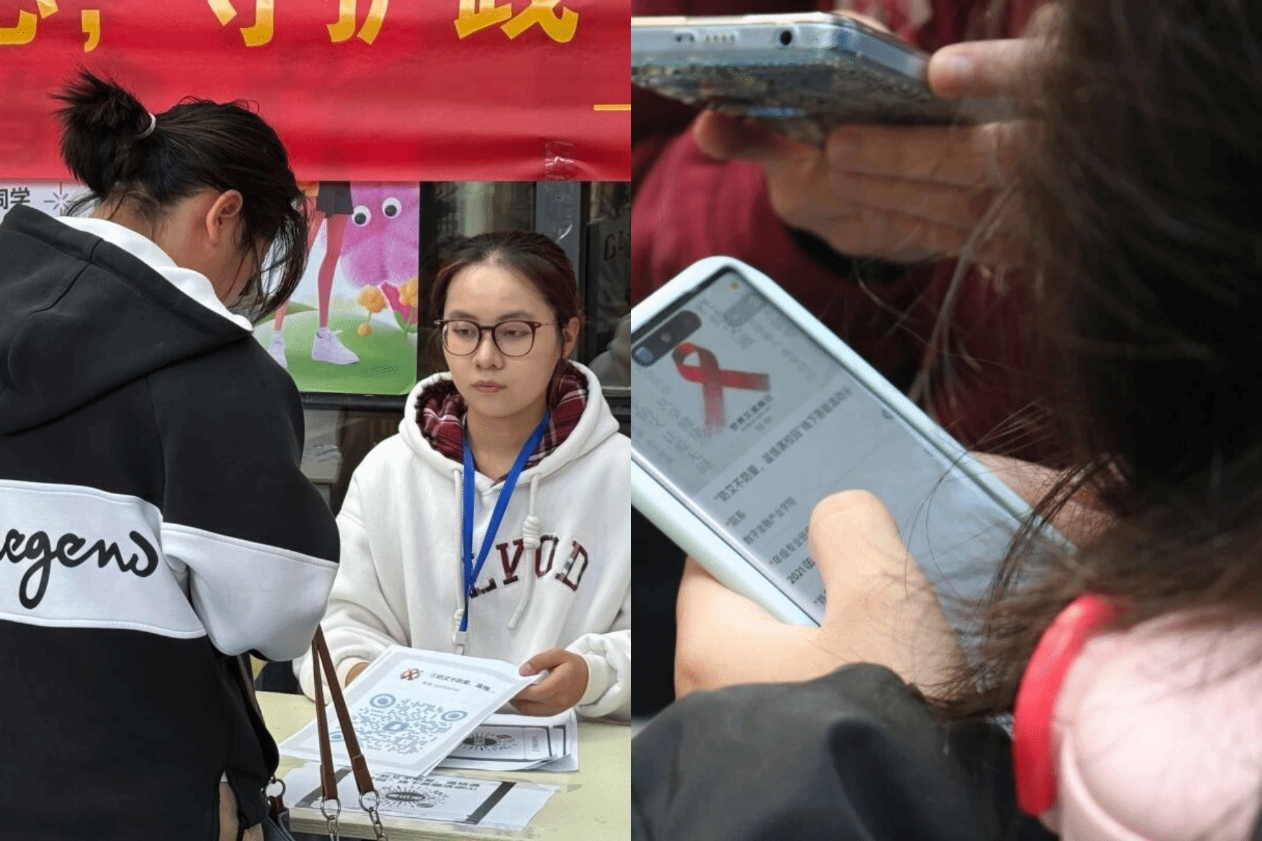 从上午10点到下午1点半,同学们带着对防艾知识的好奇来到现场,扫码进入小程序参与答题:有人在“HIV的传播途径”题里理清了认知误区; 有人在“日常防护细节”题里记住了实用的保护方法;大家在一道道题目里,厘清了“HIV传播途径”的认知误区,记住了“日常防护”的实用细节,也明白了“蚊虫叮咬不会传播HIV”“日常接触无需恐慌”这类关键常识。