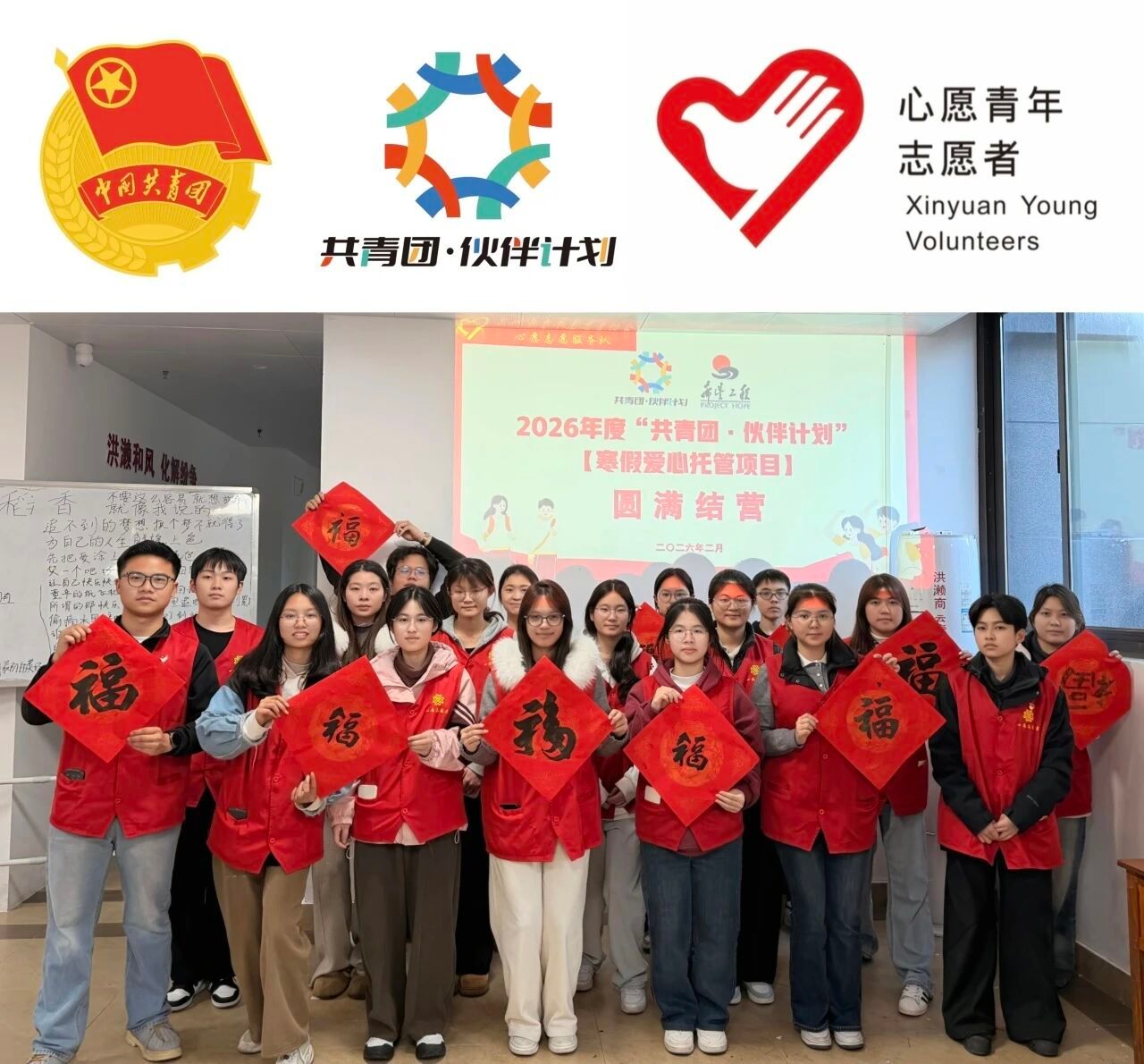 为深入贯彻落实习近平总书记关于青年工作的重要思想,扎实推进大学生社会实践与志愿服务工作,践行“奉献、友爱、互助、进步”的志愿精神,2026年寒假期间,福州软件职业技术学院现代通信产业学院陈晖政、钟李秀、陈静梅三位同学积极响应号召,投身于南安市2026年“共青团·伙伴计划”公益爱心托管冬令营志愿服务工作,以青春之力践行社会责任,用实际行动书写青年担当。