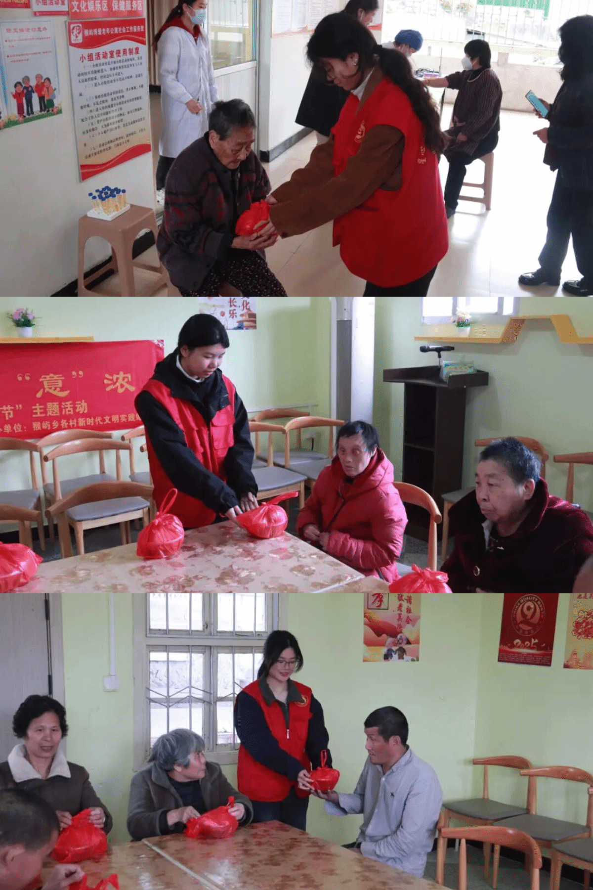 志愿者们将精心熬煮的拗九粥分装妥当,走进养老公寓中。一碗碗混着红枣、花生清甜的热粥,一句句亲切的问候,让暖意顺着指尖直抵心底;志愿者们陪长辈唠家常、整理杂物,用细碎陪伴驱散独居老人的孤单。