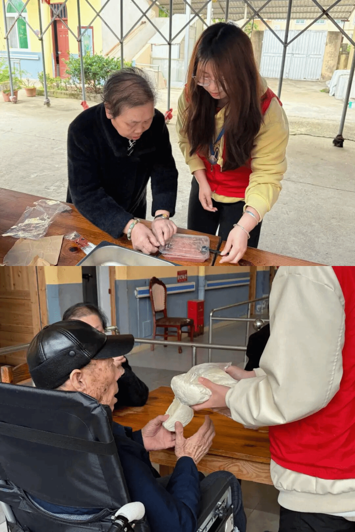清晨,志愿者们准时集合,带着精心准备的食材与爱心物资,一同前往敬老院。抵达后,大家迅速分工、默契配合,有序开启暖心服务。
