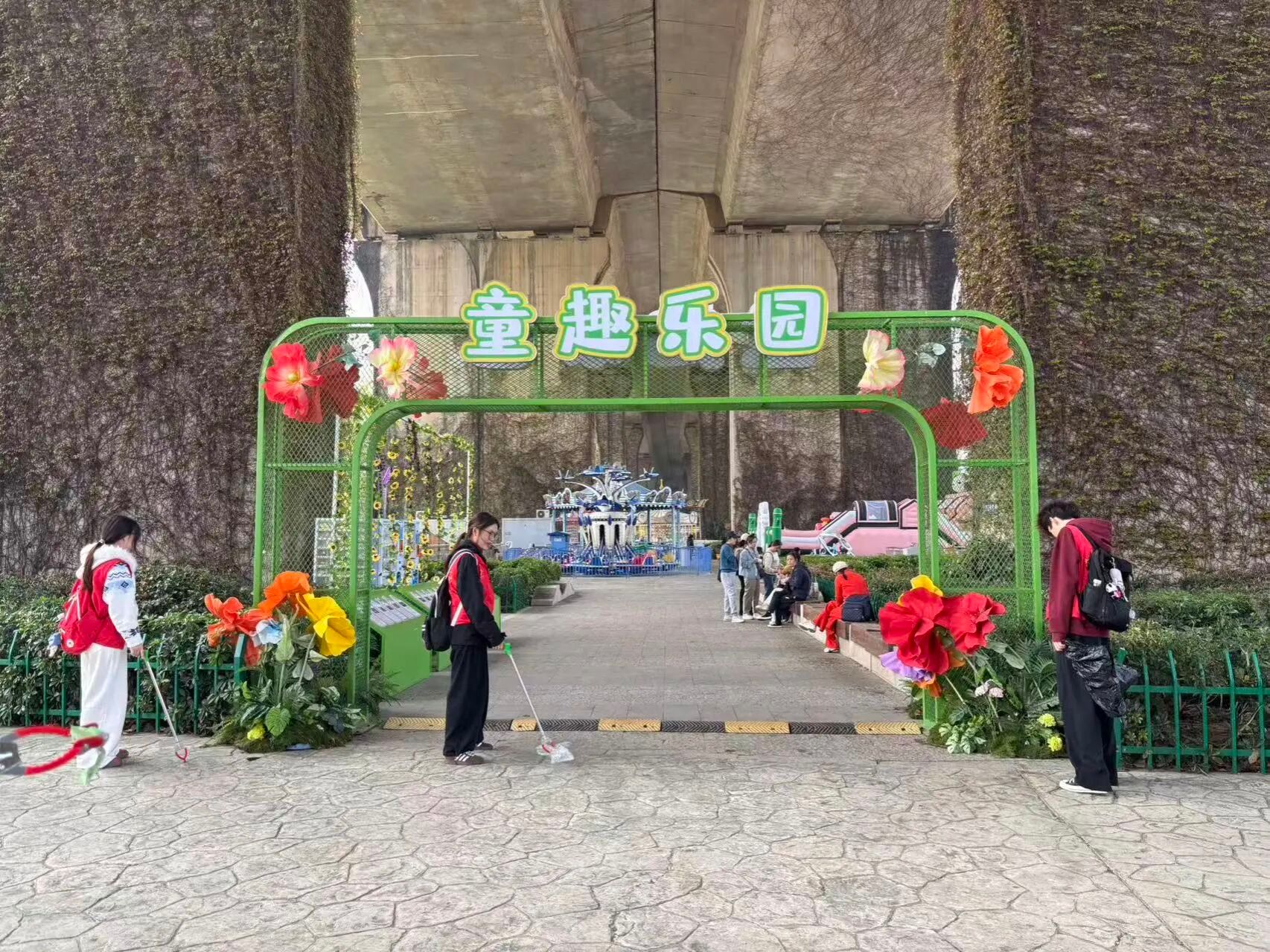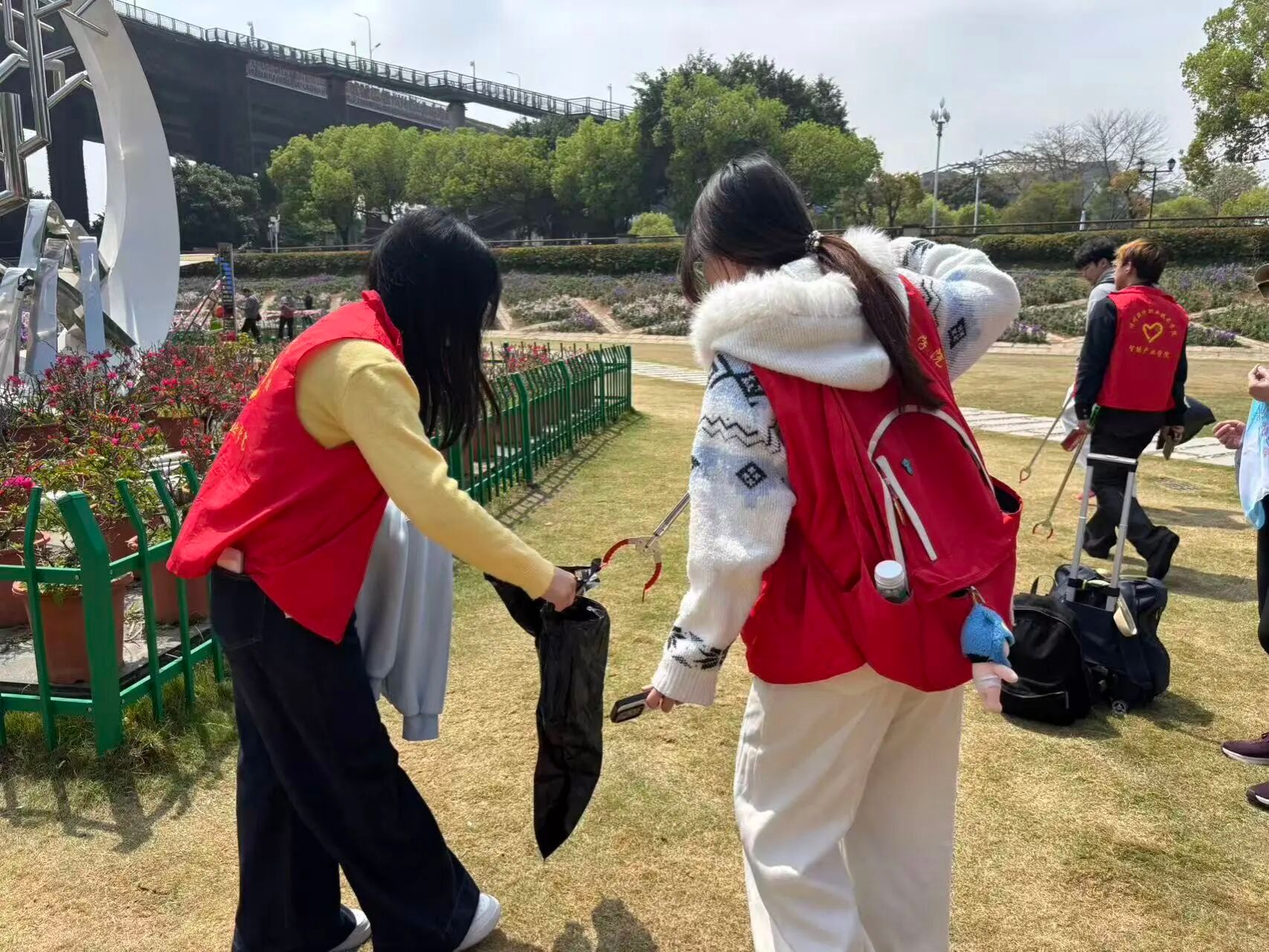 实践环节中,现场执行组分为 2 个清洁小队,按责任片区开展环境清洁。团员们以 “无遗漏、无死角” 为标准,重点清理绿化带盲区、座椅下方、步道缝隙、垃圾桶周边等卫生死角,捡拾生活垃圾、白色垃圾及烟头杂物,并专人负责垃圾分类与转运,统一送至指定回收点。清洁完成后,全员集合清点、回收工具、核验场地,确认无误后有序返程,做到文明服务、善始善终。