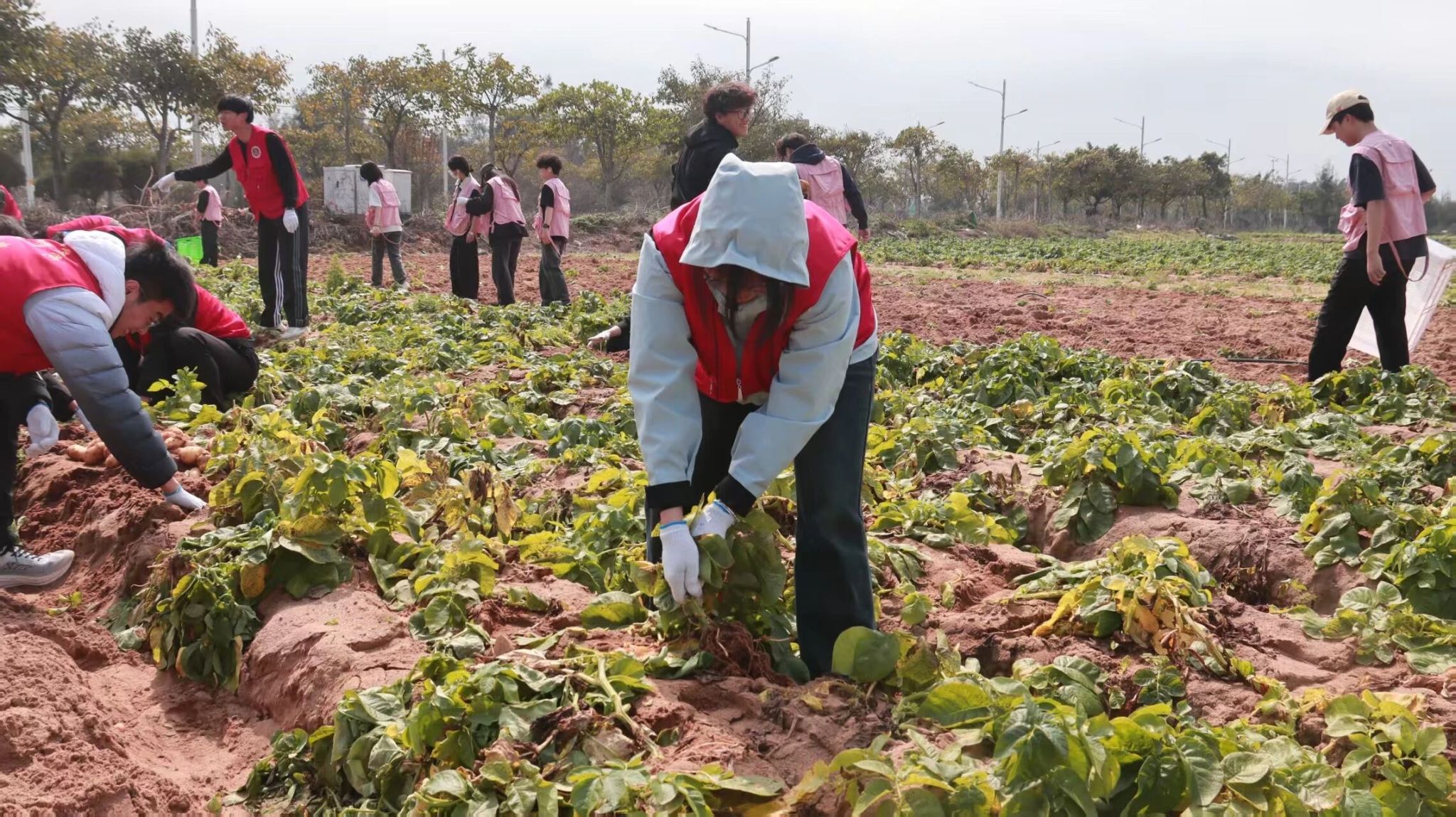田间地头满是劳动热情与互助氛围。学员们分工协作、配合默契,有人刨土挖掘,有人捡拾分拣,有人装袋搬运,寂静的田地顿时热火朝天。大家高举成果相互展示,在协作中体会到劳动的价值与集体的力量。