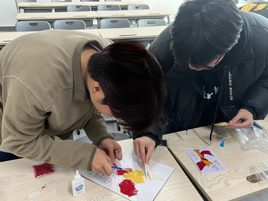 活动伊始,团支书王思滢首先为大家讲解了种子画的起源、发展以及制作技巧。随后,同学们以小组为单位,围绕生态文明建设、青春梦想展开创作。大家充分发挥想象力和创造力,将一粒粒普通的种子精心粘贴,绘制出一幅幅主题鲜明、色彩斑斓的种子画作品。