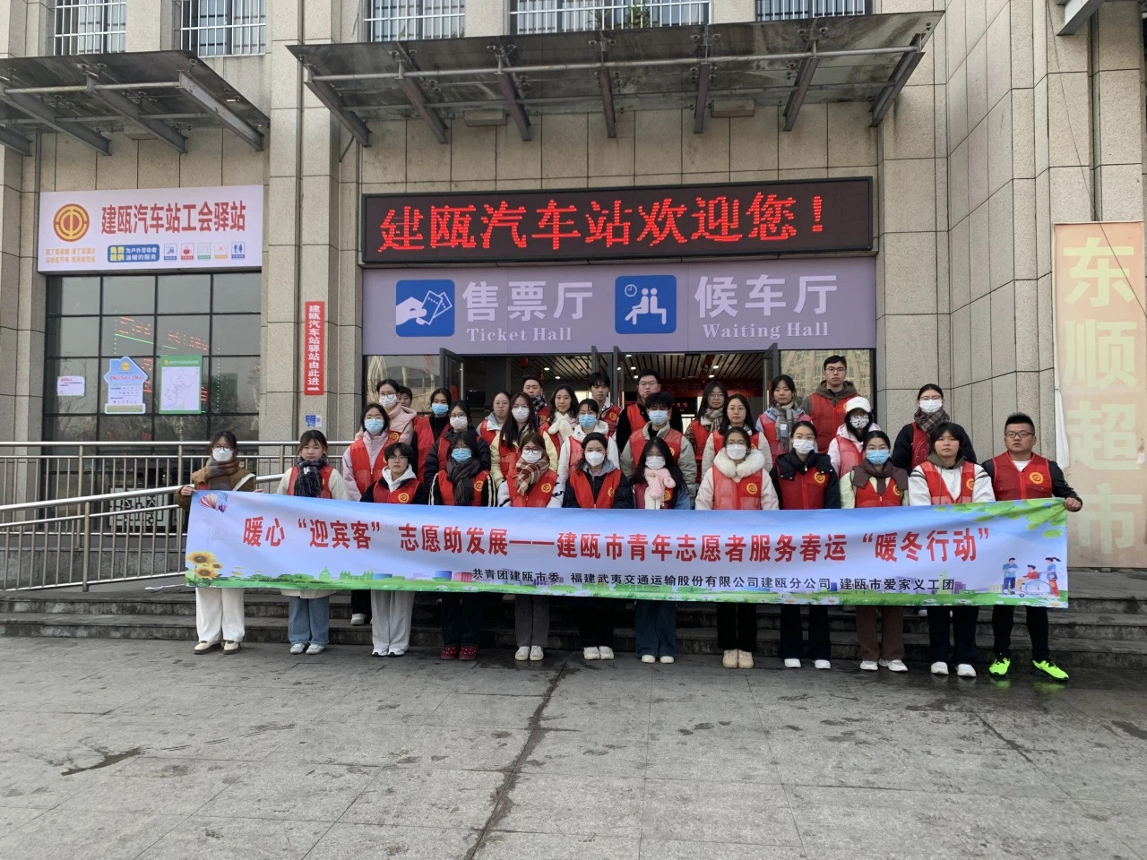 为协助车站工作人员维持秩序,为旅客提供引导和帮助,缓解他们旅途的疲惫与焦虑,容艺影视产业学院团委实践部志愿者于2月17日9:00抵达福建省南平市建瓯市G528建瓯东门汽车站开展“青春献爱心,冬日传温情”志愿活动。