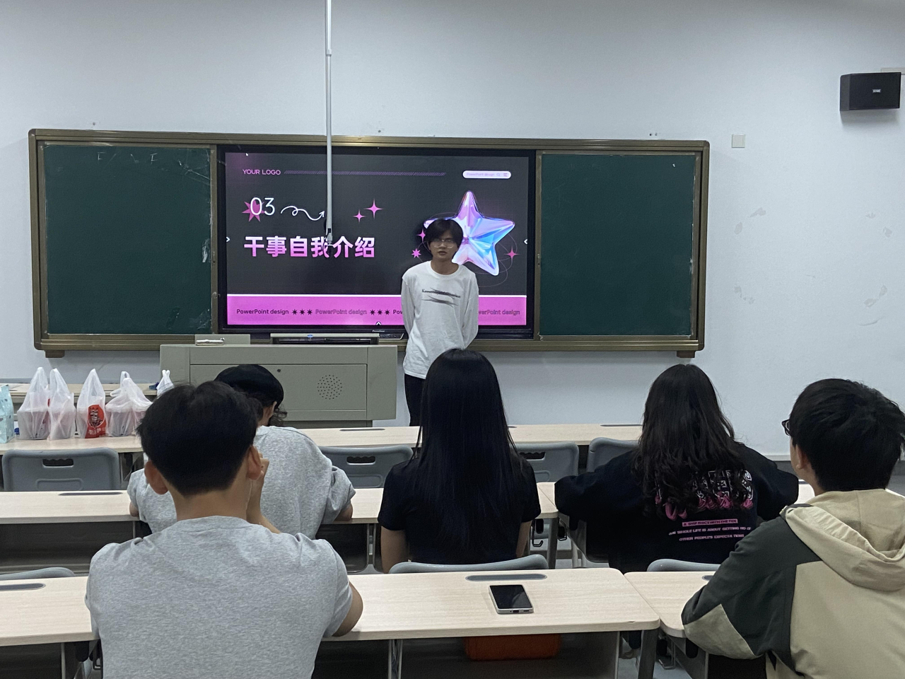 随后进行新成员们的自我介绍,在新成员介绍期间教室里充满着欢声笑语,同时也希望各位干事积极参与活动,吸取经验。