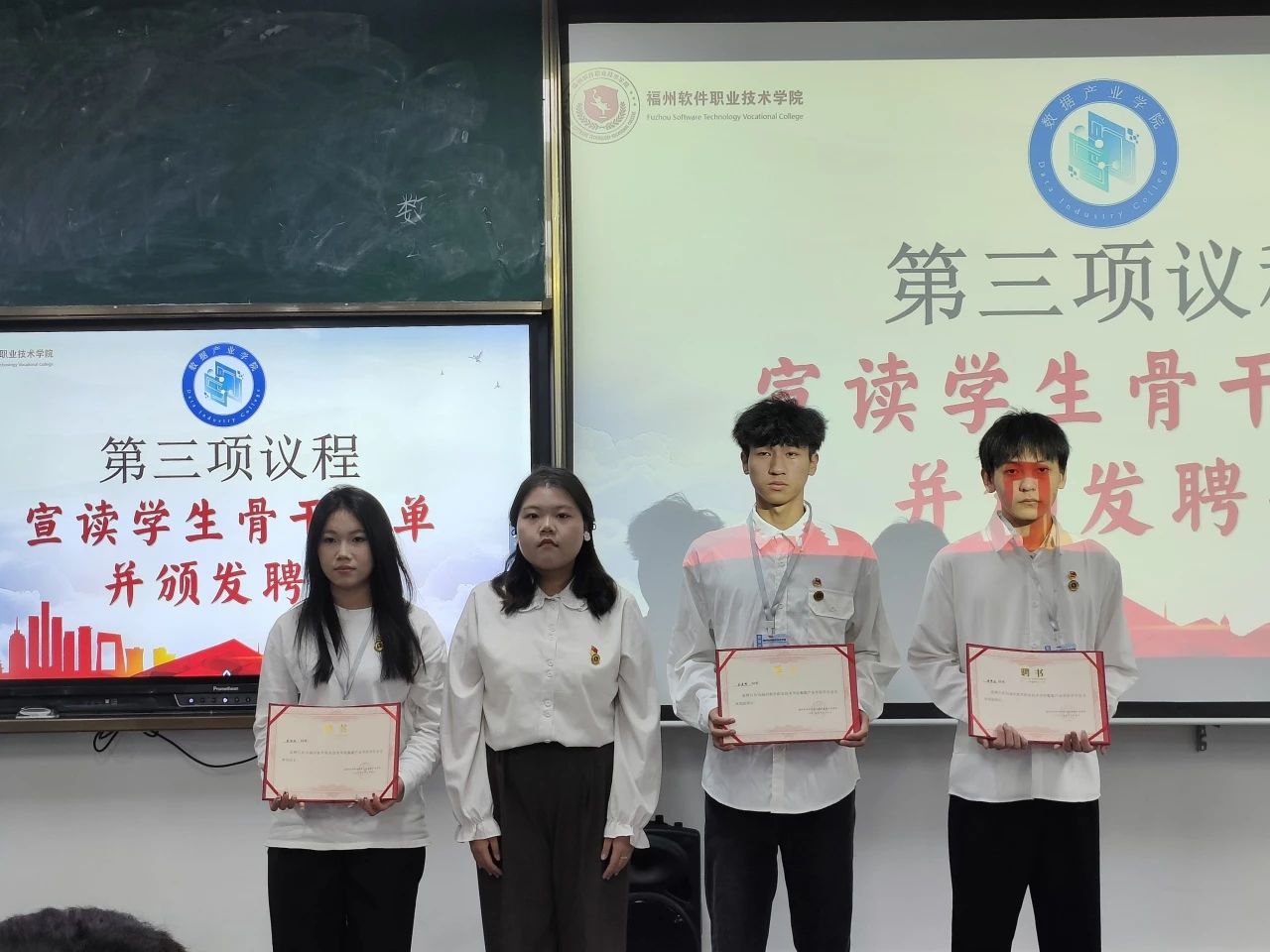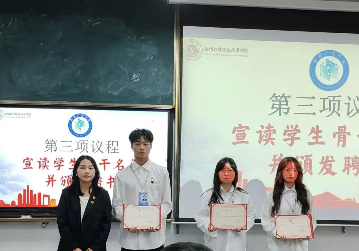 为加强学生骨干责任意识,提升团学组织的团队凝聚力,数据产业学院2023级学生骨干授任仪式于10月31日在教学楼A303隆重举行。数据产业学院党总支副书记吴昉、团委书记张梦颖出席此次会议,全体辅导员、2023级全体学生骨干共同参与此次会议。此次大会由李佳奇同学、马莹同学主持。