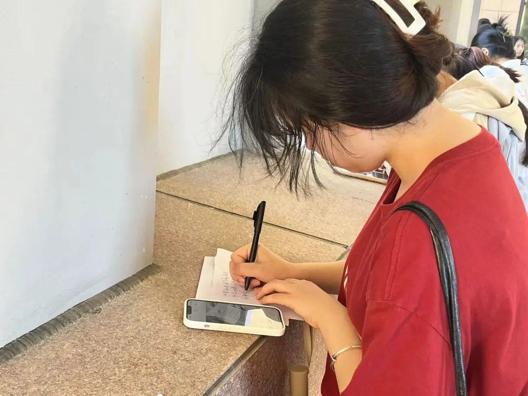 掌印绘恩情,感恩盈心田。活动伊始,学子们在工作人员的引领下找到对应班级“传递器”,用心绘出手掌之印,每一笔都蕴含着对老师的深情厚意,郑重题名其上,并附上真挚的祝福与感激之语。这一份独特的献礼,不仅是对老师们辛勤付出和无私奉献的崇高敬意,更是学子们内心深处对老师们的深切感激与无尽敬仰之情。