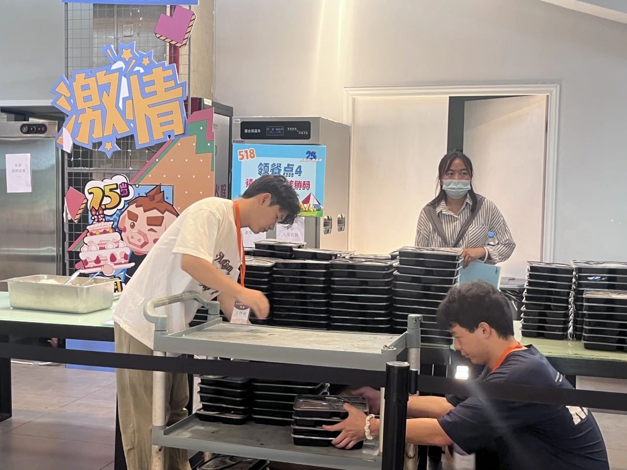 志愿者运输餐盒工作展示
