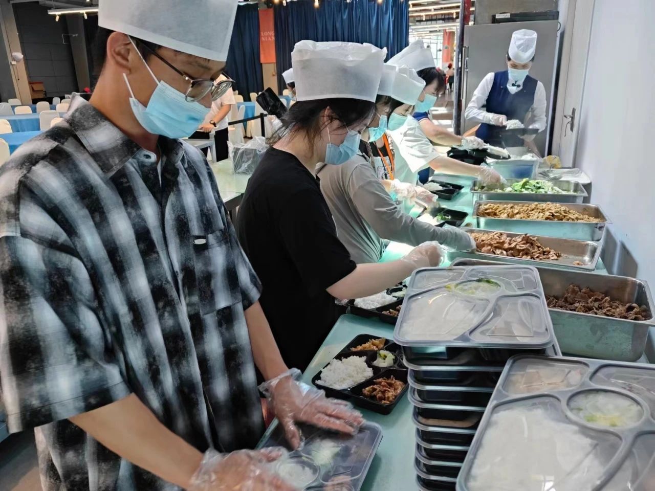 志愿者们提前到达餐厅进行准备工作