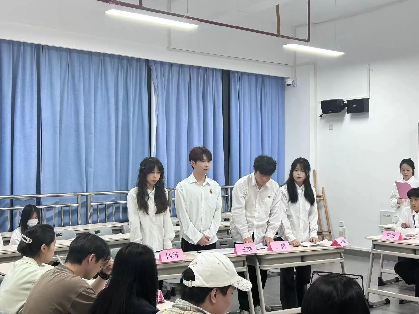 为了丰富同学们的课余生活,加强我院人文文化建设,提高学生们的综合素质,展现学生朝气蓬勃、积极向上的青春活力。5月15日,我院在A608教室顺利进行“肩负时代使命,思辨青春华章”主题辩论赛半决赛,参与本次辩论赛的评委老师有智能产业学院思政辅导员蒋雅真老师、黄奇龙老师、寇文静老师、郭慧婷老师、吴颜培老师。本次比赛由蔡思颖同学、卢伟达同学主持。