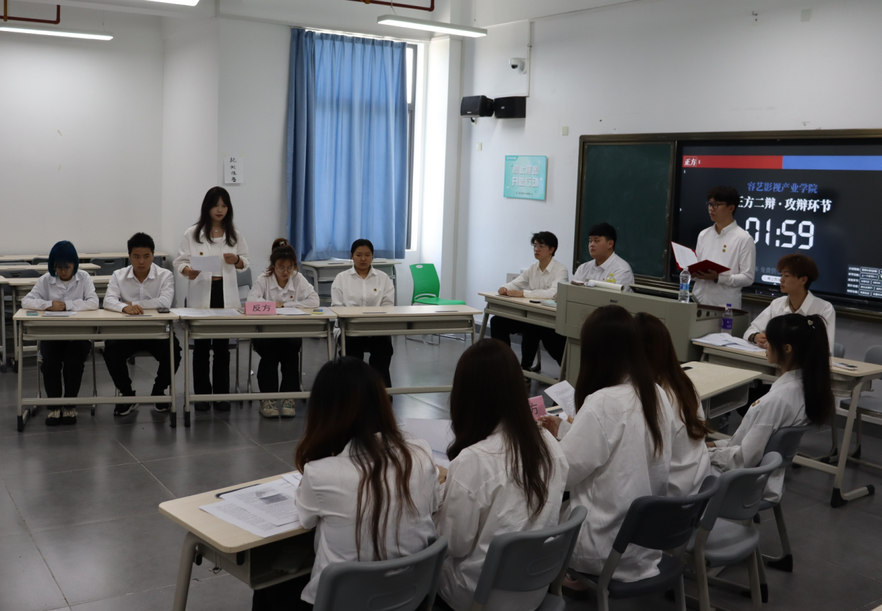 “我们从未停止思考,我们从未怯于表达。”为了增强同学们的语言表达、沟通交流以及思辩能力,给同学们提供思考和表达自我的平台,5月17日,容艺影视产业学院学习服务站在C506、C508开展辩论赛复赛,本次比赛邀请到了我院团委书记李琦雯老师及团委学生干部作为评委,由高海辉、丁昊两位同学进行主持。