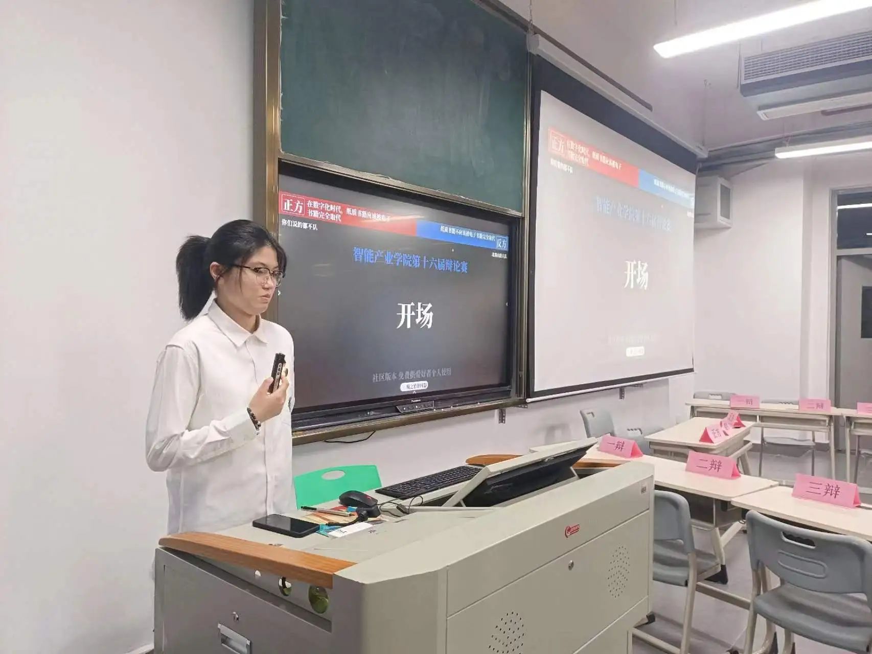 承儒辩之风,展浩然正气,储天下人才,图国家富强;为了丰富智产学子的校园生活及课余生活,推动学院素质教育工作,增强同学间的交流,培养团队合作意识,促进学生全面发展,进而在全院营造勤于思考、敢于雄辩的良好氛围。智能产业学院于5月13日,在A305教室举办的“肩负时代使命,思辩青春华章”主题辩论赛复赛顺利进行。
