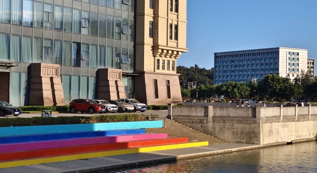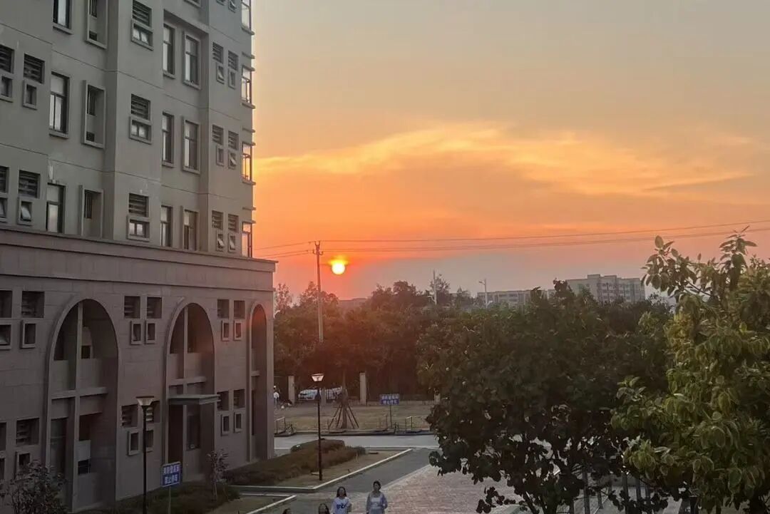 夕阳把校园的天际线染成温柔的橘粉,余晖漫过教学楼顶,又悄悄铺满图书馆前的石阶。晚风吹动树梢时,落日正慢慢沉入远处的楼宇,把每一缕光影都酿成治愈的模样,用镜头留住这转瞬即逝的浪漫。