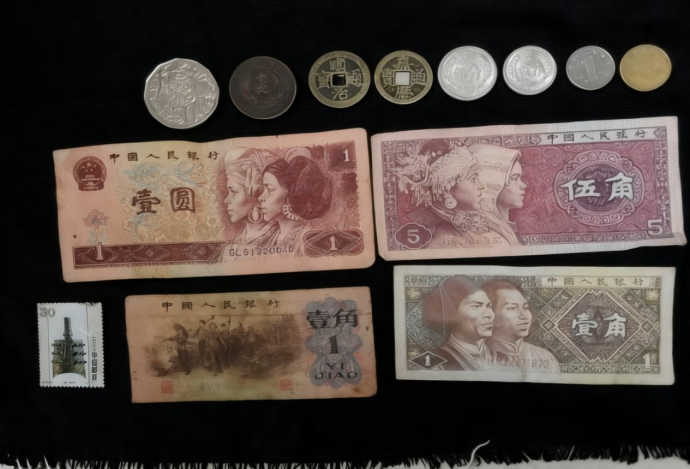 货币的历史格外悠久,像古币里的“同治通宝”“嘉庆通宝”,跨越百年在先辈手中流转,虽不再用于交易,却默默串联家族历史,见证不同时代经济脉络,映射货币体系传承变革;到了父辈成长的年代,第四套人民币的壹圆、伍角、壹角纸币成为日常消费“主角”,那时生活不宽裕,挣钱不易,壹圆能买好几斤蔬菜,角币凑起生活细碎温暖,承载着家庭买菜、购书的烟火记忆,见证从计划经济向市场经济过渡时普通家庭的消费日常,小时候爸爸总说起他们用这些角币维持生计的故事;现代硬币延续支付功能,又开启消费新篇。还有那张80分邮票,是邮电通信鼎盛期产物,过去家人异地分离靠书信传思念,邮票贴信封跨越山水送牵挂,是家庭情感纽带“使者”,也见证通信从书信慢递到数字即时传的跨越,如今成怀旧符号,定格“见字如面”的温情。