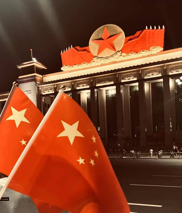 夜幕降临时,露天放映的红色影片与教学楼里依旧亮着的灯光相映。光影中,前辈们为祖国奋斗的身影,与此刻伏案调试程序的我们渐渐重叠。我们或许不会站在历史的聚光灯下,但会用自己的专业所长,在数字时代的赛道上奋力奔跑——因为我们深知,76周年的华诞不是终点,而是属于我们这代青年的新起点。