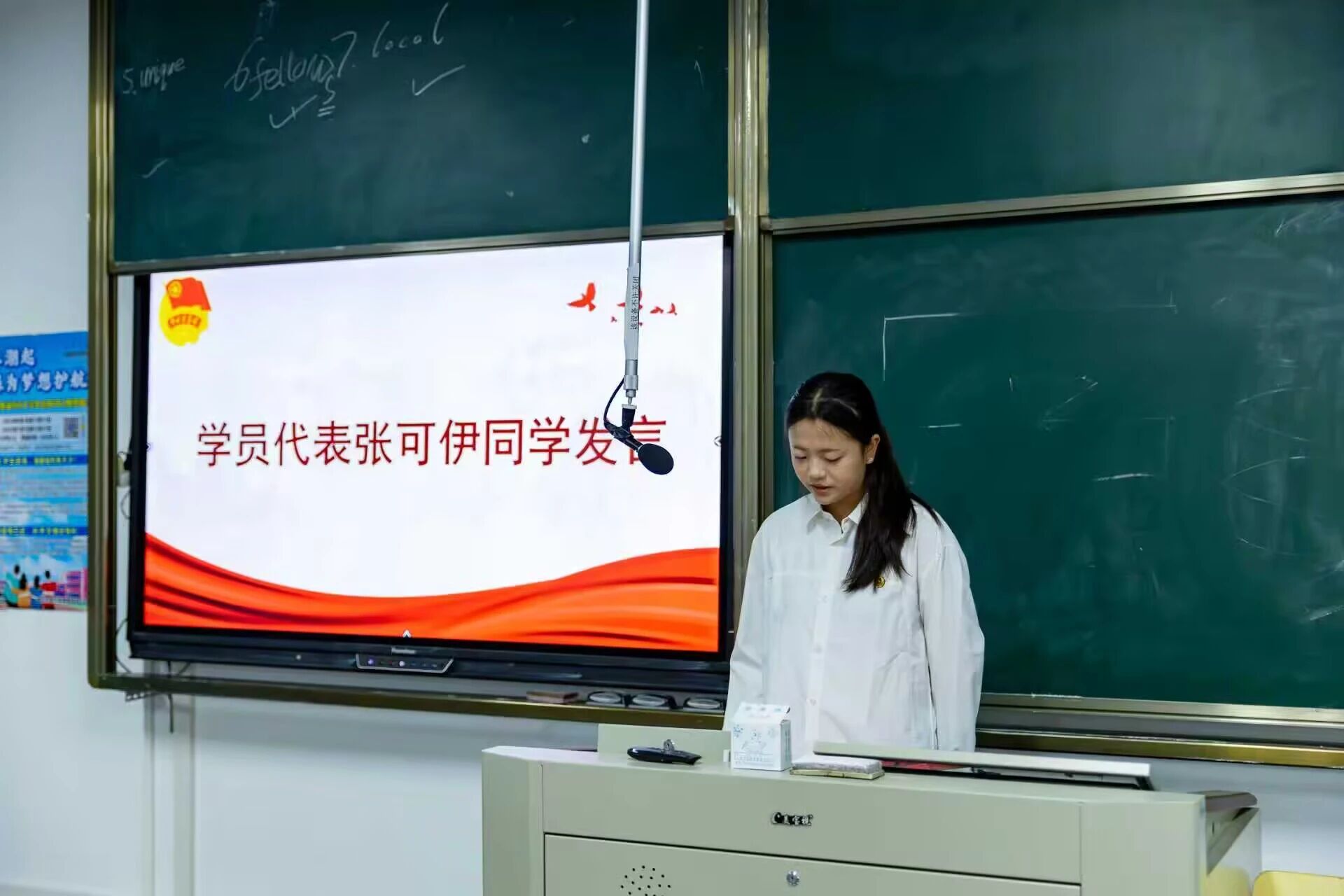张可伊同学作为入团积极分子代表发言,在发言中张可伊同学表达对团组织的崇敬与憧憬,她表示,要以不卑不亢,不骄不躁,踏实坚定地态度对待这次的培训机会,也希望各位入团积极分子携手共进,以团员的标准严格要求自己,积极参与团组织的各项活动,不断提升自我,以入团为新起点严格要求自己、早日入团。