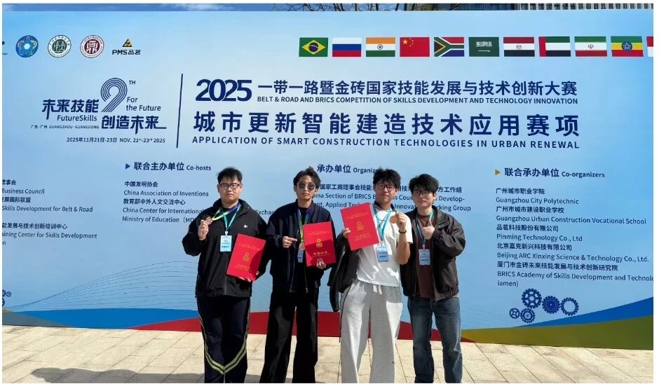 近日,“2025一带一路暨金砖国家技能发展与技术创新大赛之城市更新智能建造技术应用赛项”全国总决赛在广州圆满收官。本次大赛由金砖国家工商理事会中方理事会、一带一路暨金砖国家技能发展国际联盟等联合主办,吸引了全国400支实力强劲的高校队伍同台竞技。